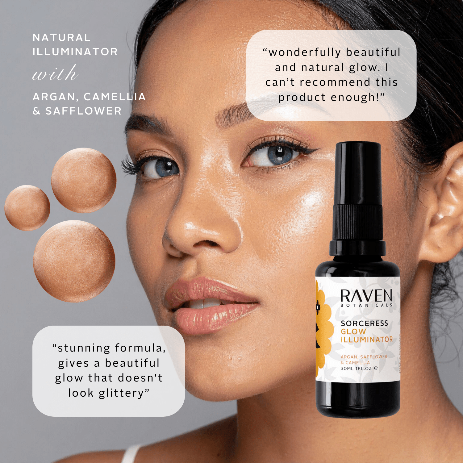 Glow Illuminator is a sunshine-infused blend of skin-loving plant oils with an added shot of ethically sourced mica to nourish and illuminate face and body. Containing argan, camellia and safflower, this versatile product leaves an elegant radiance to accentuate all your best features. Works brilliantly as a base, layered with makeup or on its own to accentuate contours and give a gorgeous natural glow.